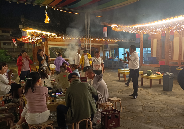 古村落無處不體現朝鮮民族的風情,傍晚時分的古村落格外的迷人,等待大家的是地道的民餐。小棉襖人載歌載舞、共度美好團建時光。
